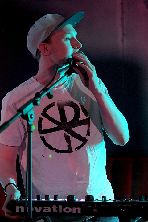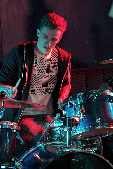 Minimal light - two blue LED strips in the back corner + red LED on drums. All without flash.